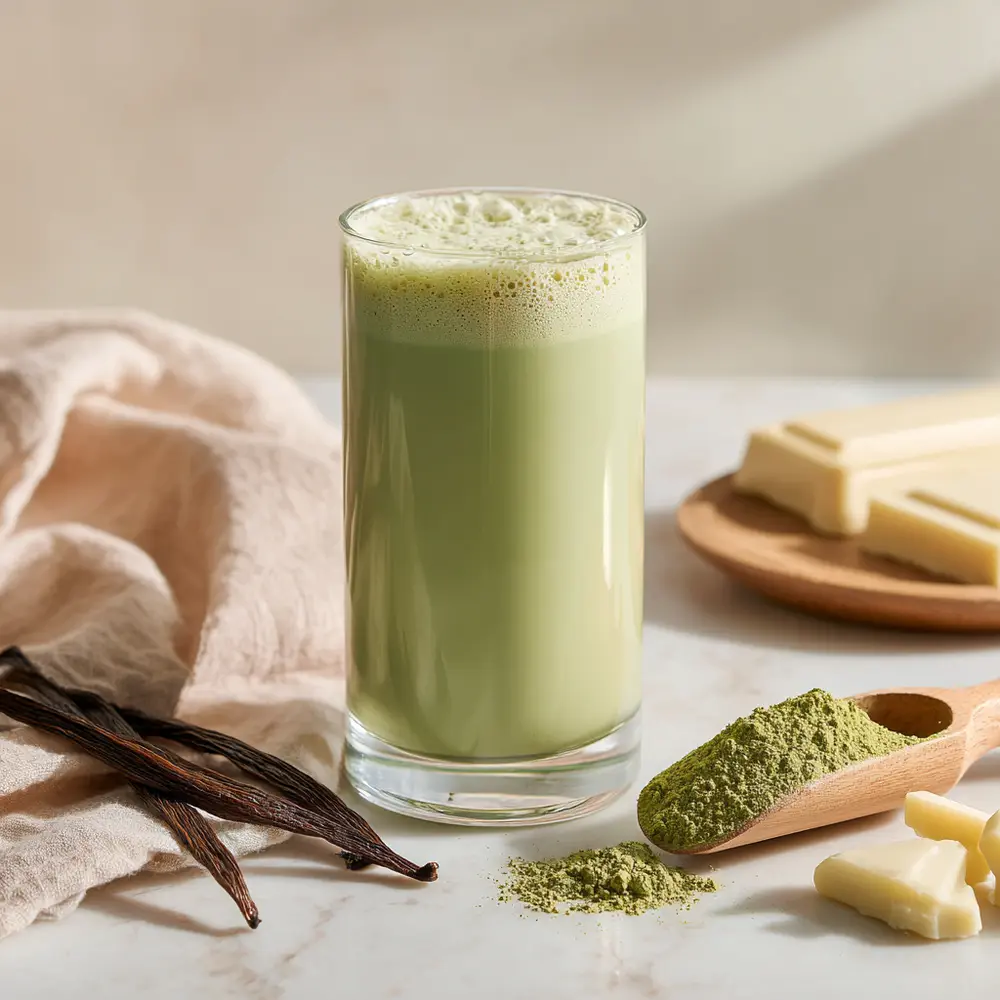 Vanilka přináší do nápoje nejen sladkou a jemně krémovou chuť, ale také pocit luxusu. Její aroma povzbuzuje smysly a přináší okamžitý pocit pohody. Kombinace matchy s vanilkou vytváří harmonický zážitek, jemně sladký, ale přirozeně vyvážený. Mléko doplňuje celkovou hebkost, takže nápoj působí nejen lahodně, ale i krémově a sofistikovaně.